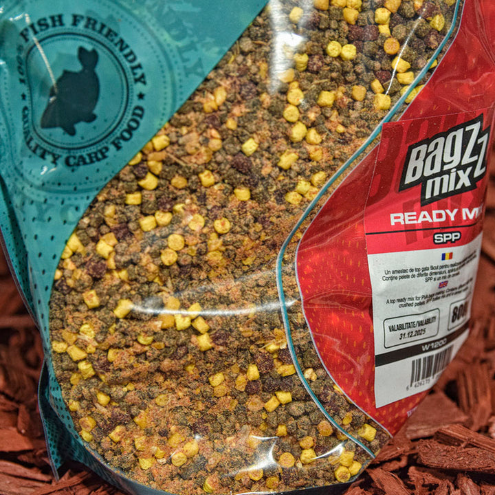 Bagzz Ready Mix este un amestec complet dedicat realizarii pungilor PVA compus dintr-o multitudine de ingrediente. Mixul contine atat o parte de pelete formata din micropelete 2mm, Multimix 4mm si pelete 6mm WLC Carp cat si o partea prafoasa de mare atractie. Partea prafoasa contine un procent de mix boilies, crumble de pelete, sparturi de diferite seminte, spartura de tigernuts dar si cateva seminte mici precum mei, sorg, canepa.