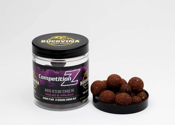 Gama Competition Z squid pruna- un fish meal putin picant, cu o cantitate mare de robin red, aminoacizi printre care si celebrul L030 si toata gama de atractanti esentiali. Un boilies de viteza, cu un start rapid ,o nada pentru competitie. In 2017 a fost testat cu succes aducand foarte multe podiumuri chiar si pescarilor cu mai putina experienta.