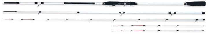 Seria lansetelor Team Feeder Pro Method a fost conceputa, asa cum arata si numele, pentru stilul de pescuit method. Noile lansete, avand o actiune progresiva, permit folosirea momitoarelor method de mici dimensiuni, pe care le vom si putea lansa la distanta dorita fara nici un pic de efort. Gratie flexibilitatii acestuia se pot folosi, in cea mai mare siguranta, carlige mult mai mici si fire foarte subtiri. Disponibil in mai multe lungimi, de la 3m pana la 3,9m, cu putere de aruncare diferite, astfel vom putea alege o lanseta pentru fiecare situatie aparuta pe malul apei. Manerul ales pentru aceste lansete sunt cele de tip split, adica doar la baza acesteia s-a folosit materialul EVA, astfel avand un contact direct cu blank-ul lansetei. Lungime: 3,9m Lungime de transport: 135cm Nr. tronsoane: 2+3 Nr. inele: 15 Greutate: 238gr Putere de aruncare specificata: 40-100 g Actiune: Heavy Blank: Carbon