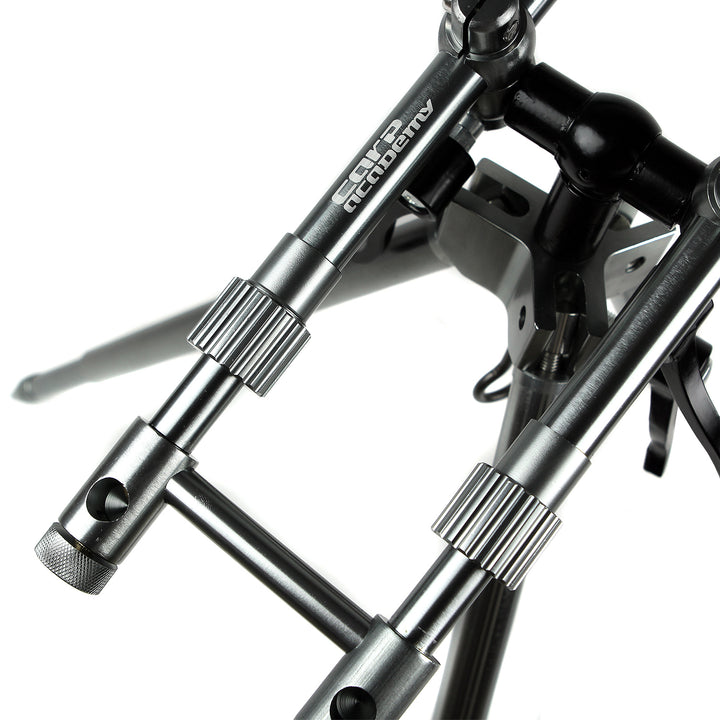 pe trepied, eliminând astfel posibilitatea de a evitarea oricărei posibile coliziuni sau încurcături. Lungimea cadrului poate fi ajustată cu ușurință, dar reglabilă într-un mod simplu, dar stabil.