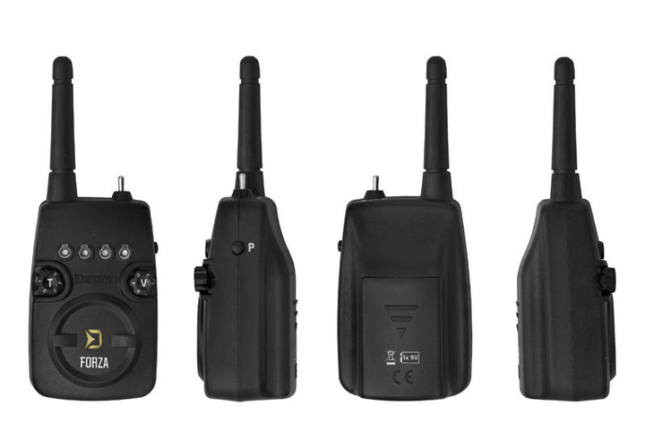 Delphin FORZA este un set de semnalizatoare cu receptor care oferă o semnalizare luminoasă, fonică sau prin vibraţii a tragerii în orice fel de împrejurări. Corpul semnalizatoarelor şi al receptorului este fabricat din plastic rigid ABS, ceea ce le asigură rezistență împotriva deteriorării mecanice. Aspectul care contribuie la durata lungă de viaţă este şi rezistenţa absolută la apă. Fiecare semnalizator poate fi comutat cu ajutorul unei pârghii în regimul de zi sau de noapte. În cazul regimului de noapte se aprinde dioda LED de poziţie, datorită căreia veţi avea întotdeauna o perspectivă cu privire la amplasarea lansetelor dumneavoastră. Avertizorii au o gamă variată de setare a prametrilor. Tonul ( buton T) și senzitivitatea în intervalul 1-9cm ( buton S) au cinci opțiuni de selectare în funcție de preferințe. În cazul tragerii repetate veţi fi atenţionat cu o tonalitate diferită. Volumul poate fi de asemenea setat la cinci niveluri diferite, nivelul 0 reprezintă modul silenţios. Deviza de necontestat a semnalizatoarelor din setul FORZA este posibilitatea de alegere între 7 culori ale diodei LED de semnalizare. În acest fel fiecare îşi va alege cea îndrăgită şi dacă veţi dori o schimbare, atunci por şi simplu veţi selecta o altă culoare cu ajutorul comutatorului rotativ ”C (colour)” şi în acest fel nu trebuie să cumpăraţi un alt semnalizator. În partea inferioară se găseşte intrarea pentru conectorul de 2,5 mm pentru conectarea indicatorului luminos de tragere. În plus, fiecare semnalizator dispune de fileturi pentru fixarea snag gear, care sunt şi parte a pachetului. În plus, pentru semnalizator primiţi şi o carcasă rigidă de transport iar pentru receptor un suport de masă!