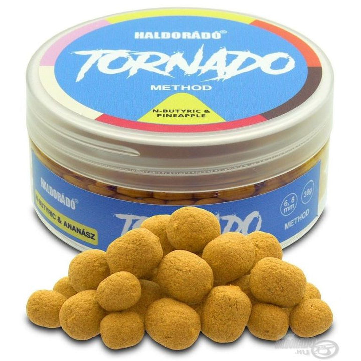 Tornado Method este o versiune optimizată , de mare succes, care este inundată de culoare și parfumuri în același mod ca și predecesorul său . Un borcan conține pelete de 6 și 8 mm mai flotante (moderat plutitoare) în aromele Tornado deja cunoscute și dovedite. Această momeală a primit forma cilindrică, pentru că așa funcționează cel mai bine.