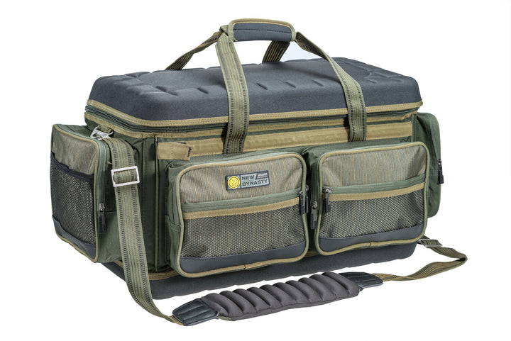 Geanta Mivardi New Dynasty cu o capacitate extraordinara este geanta ideala pt. partidele de pescuit mai lungi. Este confectionata din cordura cu capacul si partea inferioara din material rigide din EVA putand fi folosita pe post de masuta.