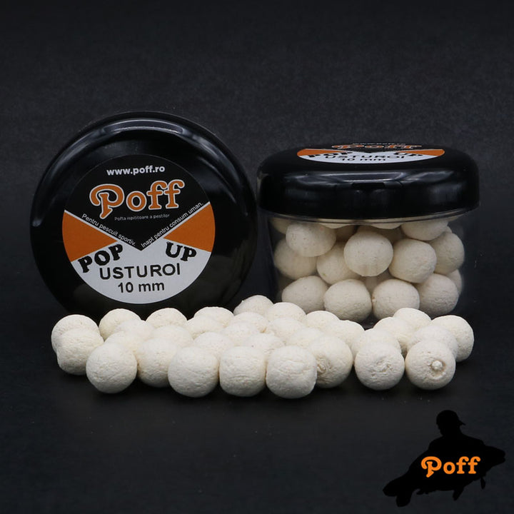 Pop Up, de mare atracţie, cu flotabilitate deosebită, aromă de usturoi. Acest pop up conţine cei mai buni aditivi, are o textură cauciucată, uşor de găurit cu croşeta, este flotant, se poate echilibra inclusiv cu cârlige mari sau monturi rigide articulate şi are o dispersie foarte bună a atractanţilor. Min. 40buc/cutie.