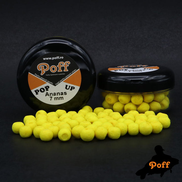 Pop Up, de mare atracţie, cu flotabilitate deosebită, aromă de usturoi. Acest pop up conţine cei mai buni aditivi, are o textură cauciucată, uşor de găurit cu croşeta, este flotant, se poate echilibra inclusiv cu cârlige mari sau monturi rigide articulate şi are o dispersie foarte bună a atractanţilor. Min. 40buc/cutie.