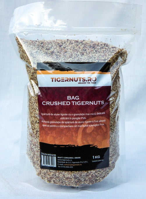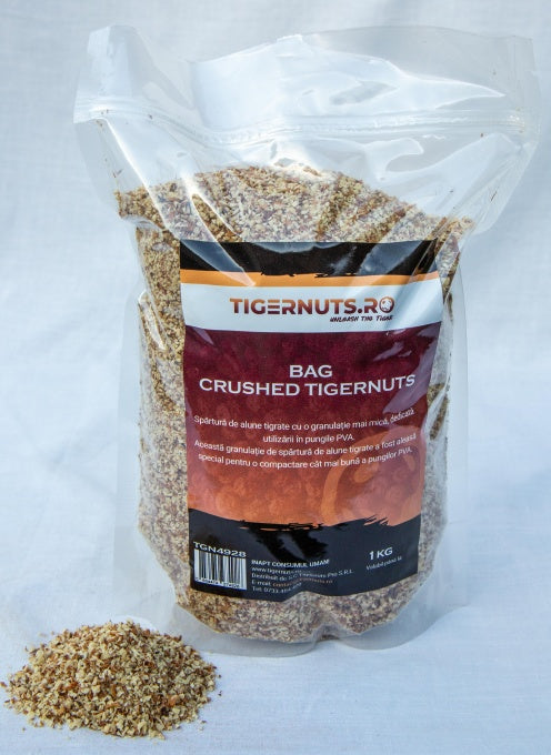 Spartura de alune tigrate cu o granulatie mai mica, dedicata utilizarii in pungile PVA. Aceasta granulatie de spartura de alune tigrate a fost aleasa special pentru o compactare cat mai buna a pungilor PVA