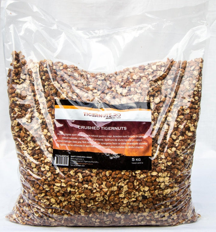 Alunele tigrate sunt un atractant natural pentru crapi. Acestea sunt bogate in zaharuri, uleiuri naturale, carbohidrati si proteine. Spartura de alune tigrate pe care o comercializam este una fara reziduuri iar spargerea face ca toate avantajele alunelor tigrate sa fie eliberate in apa mai rapid, sporind atractivitatea in randul crapilor