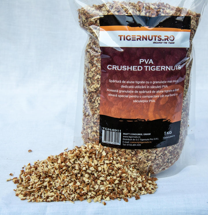 Spartura de alune tigrate cu o granulatie mai mica, dedicata utilizarii in pungile PVA. Aceasta granulatie de spartura de alune tigrate a fost aleasa special pentru o compactare cat mai buna a saculetilor PVA.