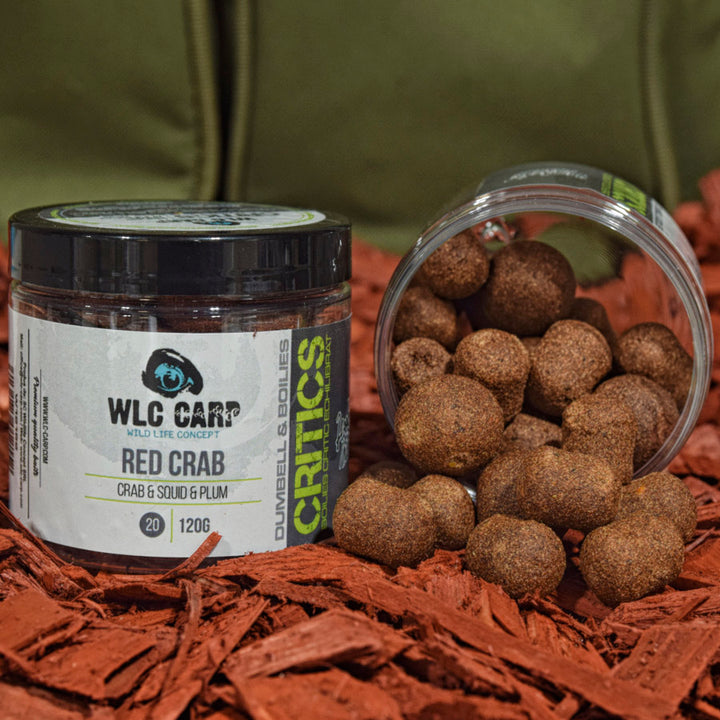 Boiliesurile de carlig Critics Red Crab sunt boiliesuri critic echilibrate fierte la aburi, bazate pe mixurile deja consacrate de la WLC Carp. Boiliesurile de carlig WLC Carp sunt bazate pe mixuri fishmeal combinat cu derivate cerealiere pentru o atracție și o dispersie rapidă a aromelor și lichidelor nutritive pe orice apă. În compoziția unui boilies Red Crab se găsesc ingrediente de calitate ridicată precum făină de pește LT999 și predigerată CPSP90, faina de Squid, combinate cu elemente de tip birdfood precum CLO, Haith’s SuperRed, extracte naturale, proteine vegetale și din lapte, un complex de aminoacizi, ouă și ingrediente de volum. Poate fi folosit pe întreaga durată a anului, fiind un boilies cu o acțiune rapidă. Aroma este una de Monster Crab, Squid Octopus și Prună.