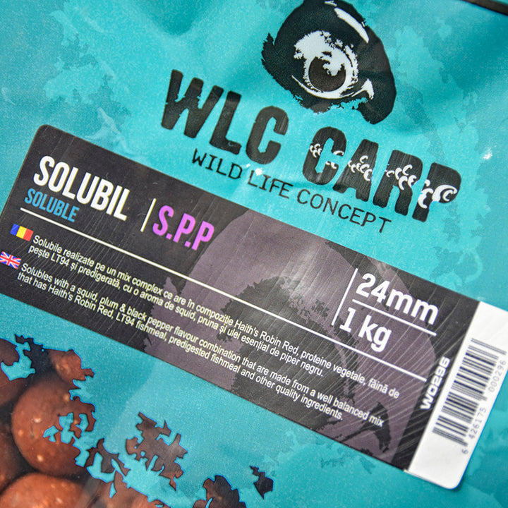 Boilies-ul solubil SPP este realizat pe un mix bine proportionat, avand in compozitie ingrediente de inalta calitate precum faina de peste LT, Robin Red, faina predigerata si o combinatie de squid, pruna si ulei esential de piper negru. Mixul SPP este cel mai vechi component al gamei WLC Carp insa ramane un clasic prinzator.