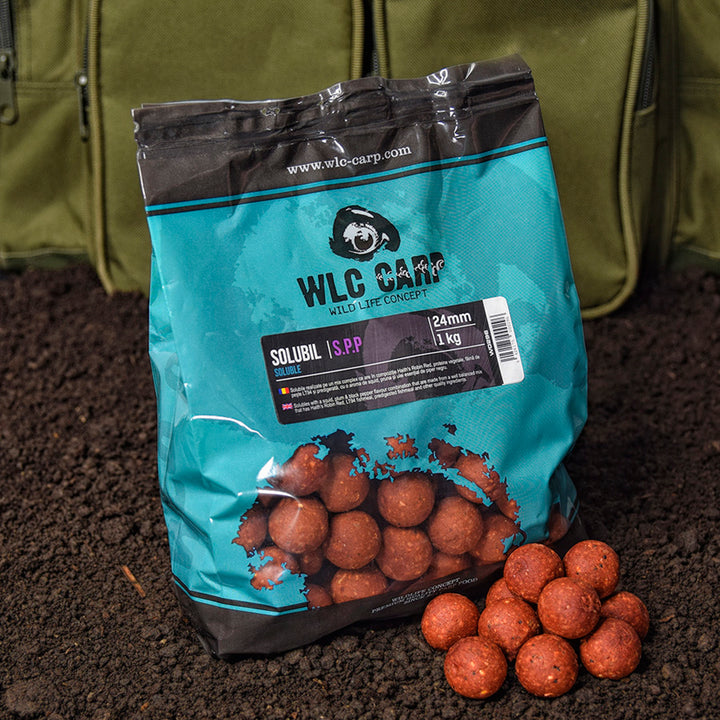 Modul de productie al solubilelor este unul prin adaugarea de lapte de porumb in partea lichida, ca apoi dupa procesul de rulare, acestea sa fie uscate pana in momentul in care se ajunge la un nivel de uscare optim pentru utilizare. Un boilies solubil precum SPP are un grad de dizolvare in apa de 100%. Timpul de dizolvare al acestuia variaza in functie de temperatura apei. Lapte de porumb din compozitia partii lichide actioneaza si cu rol de conservare, astfel ca solubilele din gama WLC Carp nu contin conservant.