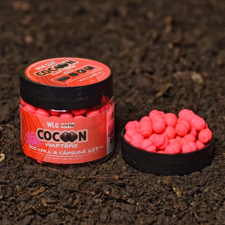 Cocoon Wafters Krill & Capsuna 6mm au fost special realizate de catre noi pentru a oferi pescarilor de feeder flotabilitatea perfecta pentru o gama larga de carlige. In decursul diverselor competitii pe care colaboratorii nostrii le-au facut sau a partidelor de placere, am observat ca este nevoie de o momeala de carlig care sa poata fi folosita cu cat mai multe modele de carlige dar si marimi diferite de carlige.
