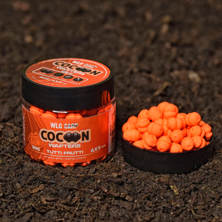 Momelile WLC Carp Cocoon Wafters Tutti Frutti 6mm au o forma inovativa si unica in pescuitul la feeder. Aceste momeli sunt critic echilibrate intr-o forma de Cocoon si pot fi folosite cu precadere in pescuitul la method feeder, in pungile solubile sau in clasicul pescuit la momitor. Am dorit ca aceasta gama de Cocoon Wafters sa fie una realizata la niste standard ridicate de calitate. Pentru noi ca pescari asta inseamna flotabilitate perfecta pentru utilizarea cu o gama larga de modele de carlige si marimi, culoarea dorita, aceeasi forma & marime in fiecare borcan si aroma persistenta.Dimensiunea unei momeli WLC Carp Cocoon Wafters Tutti Frutti este de 6x9mm.